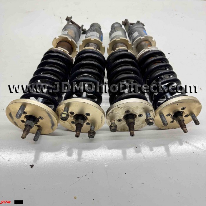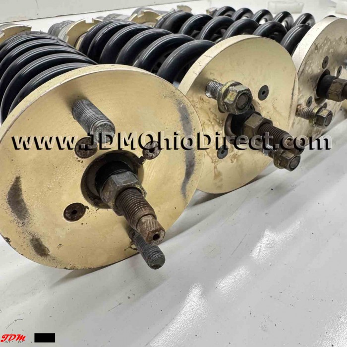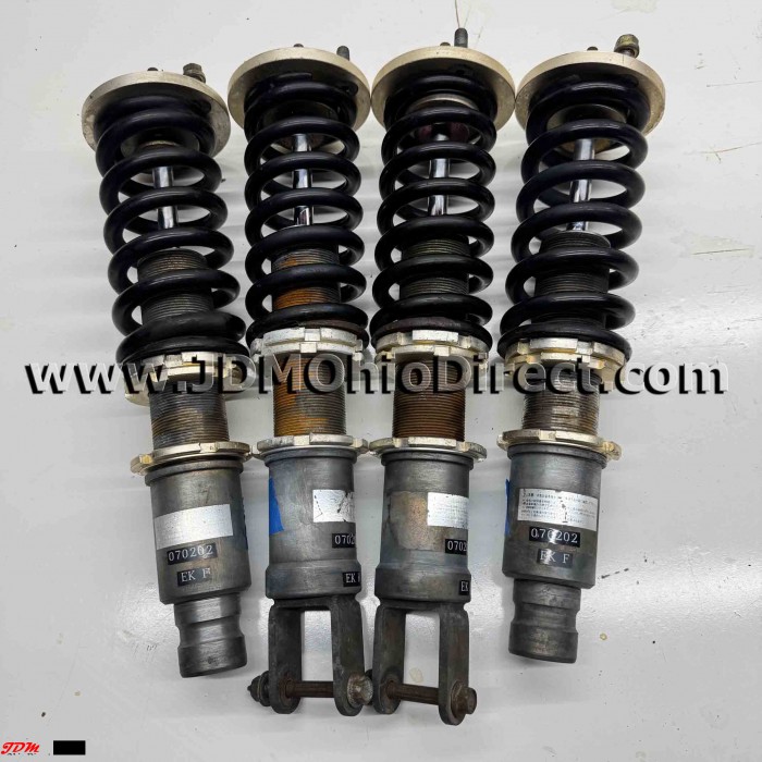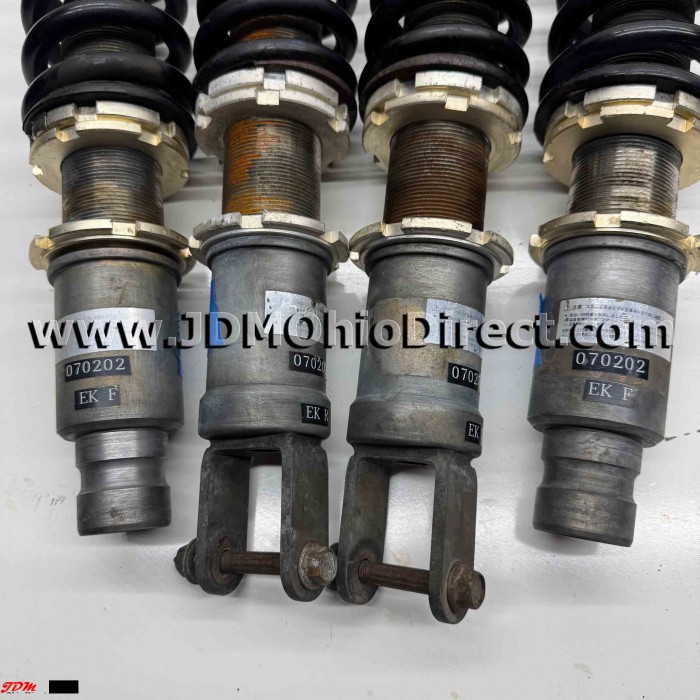 JDM EK9 Civic Algernon Adjustable Coilover Set. Coilovers are in good used condition, with no visible leaks. Coilovers have twist knob adjustability for dampening settings, thicker piston rods, and spherical upper bushings. High quality coilovers. Actual pictures shown.