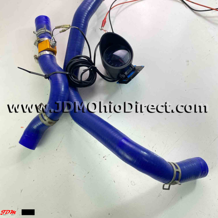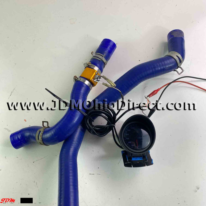 JDM EK9 Civic Type R Blue Radiator Hose Set with Gauge. Hose set is in great used condition, and includes Auto Gauge Water Temperature gauge and sensor. Hose set will work with any B-Series engine in EK chassis. Radiator hose name brand is unknown. Actual pictures shown.