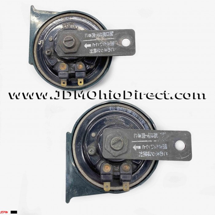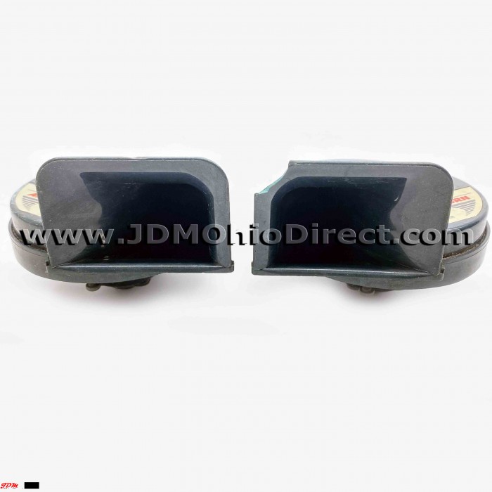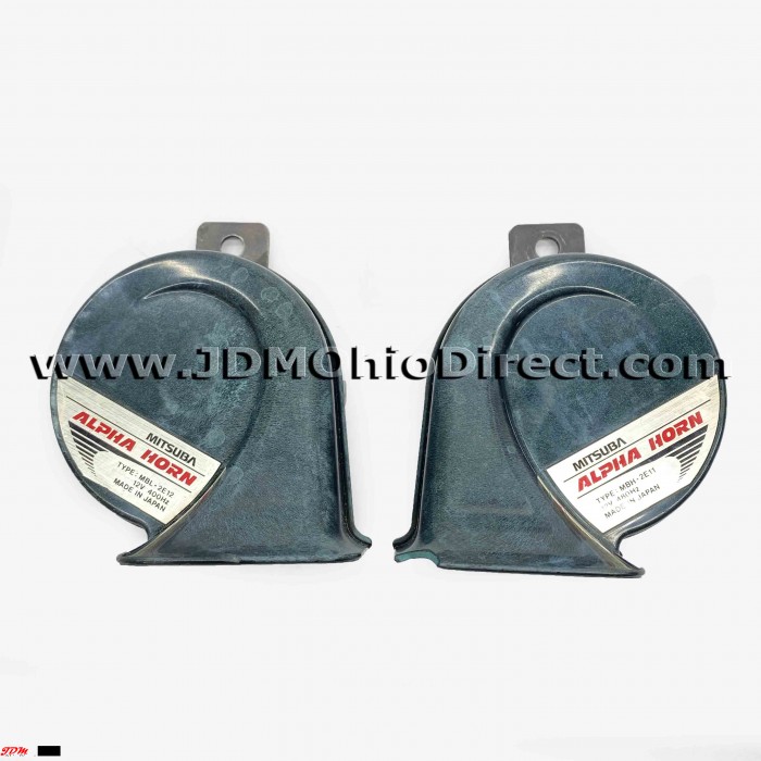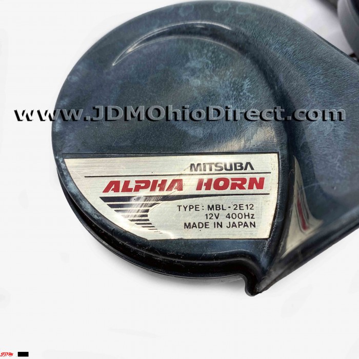 JDM Mitsuba MBL-2E12 400Hz Alpha Horns, Horns are in great working condition, but one is chipped as shown. This is a compact, 12V spiral-shaped electric horn that delivers a deep, 400Hz low-pitched tone. It is designed to provide a smooth but loud European-style sound (113dB) and its small size makes it easy to fit into crowded engine spaces. Actual pictures shown.