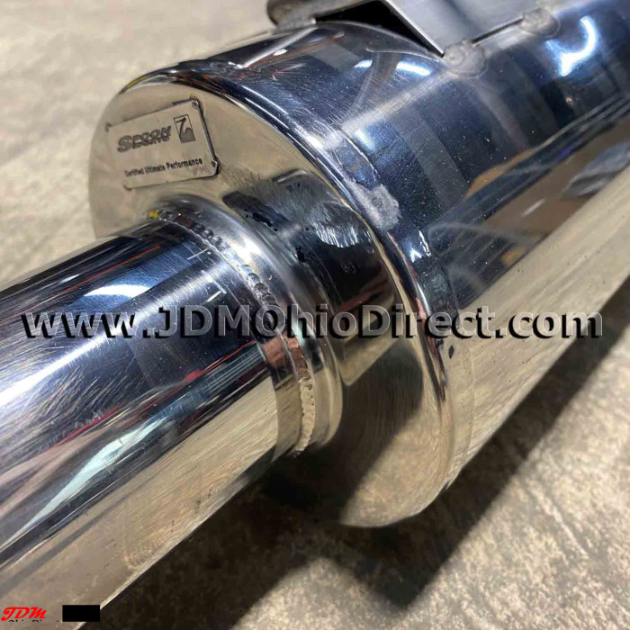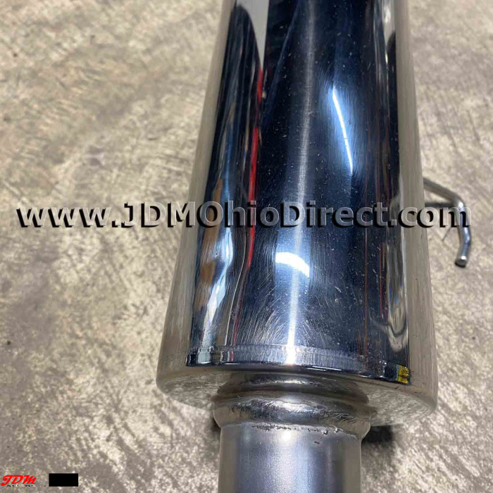 Spoon Sports N1 EK9 Civic Axle Back Muffler. Muffler is in great used condition, but does have blemishes. Muffler has minor side dent, swirl marks, and small wear mark from bumper as shown. Actual pictures shown.