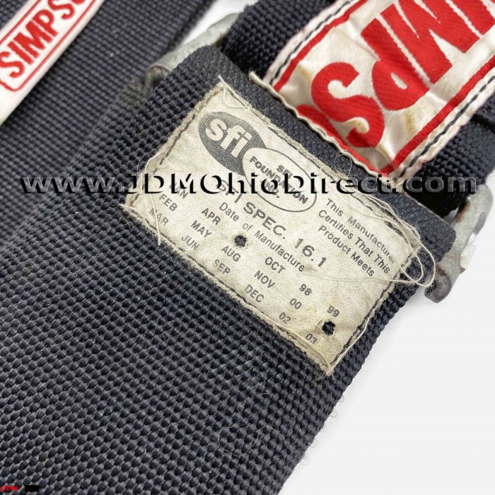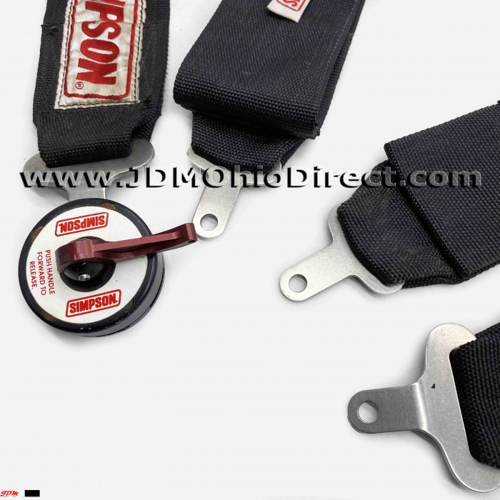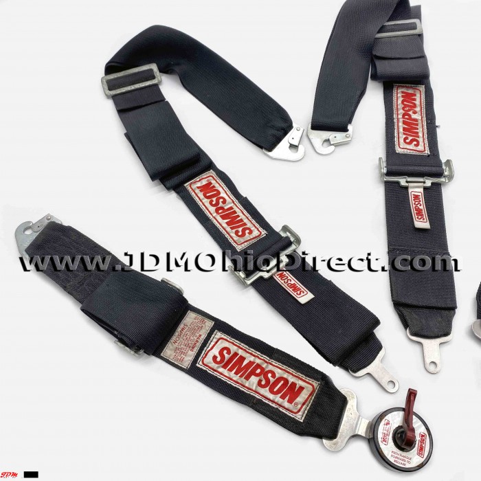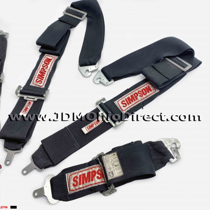 USDM Simpson Racing Camlock Lever 5-Point Seatbelt Harness. 4-point harness is in great used condition, but missing crotch belt and racing expiration year is 2001. Belts are 3" wide. Actual pictures shown.